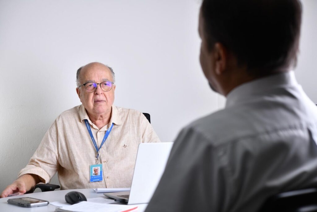 O médico Sérgio Barros conversa com um dos motoristas da operadora