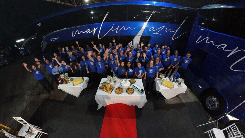 Com sede na cidade de Serra, ES, a empresa Marlim Azul se destaca no cenário nacional do transporte de passageiros por promover um tema que é, nos dias de hoje, fundamental para o sucesso em seus negócios – a segurança. Com 25 anos de história, completados no começo de 2025, a operadora tem a maior e mais moderna frota de ônibus de dois pavimentos do estado capixaba, com carroçaria Paradiso 1800 DD da Marcopolo. Além disso, conta com 80 colaboradores engajados em toda a sua política administrativa e operacional.