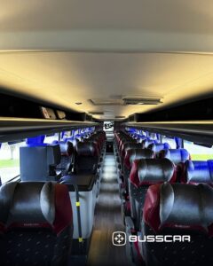 As 70 unidades trazem configurações especiais em seus acabamentos. No salão superior, serviços Semicama, os passageiros contam com Poltronas Class Leito Turismo, desenvolvidas com espuma viscoelástica, apoio de cabeça extra e assento em espuma hipersoft de 50 mm, garantindo conforto prolongado mesmo em viagens extensas. De acordo com informações, o mencionado ambiente incorpora, ainda, uma série de comodidades, como numeração de poltronas com identificação em Braille, apoios de braço escamoteáveis, apoio de pés com plataforma e apoio de pernas. As poltronas têm porta-copos individuais, além de ganchos traseiros para sacos de lixo, assegurando organização e praticidade ao longo do trajeto.