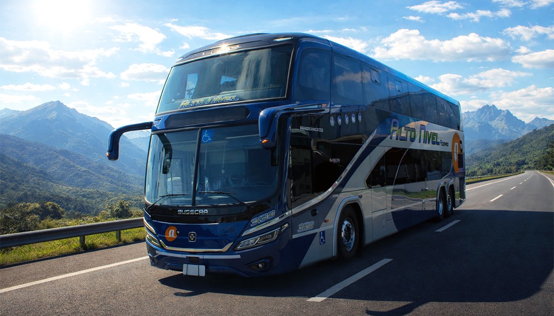 Atuando em serviços de fretamento e turístico, a transportadora argentina, Alto Nível, recebeu novos em sua frota. São duas unidades do modelo Panorâmico DD NB1 e quatro da carroçaria Vissta Buss 365, sendo que uma delas foi destinada à TiendaLeón. Todas elas da marca Busscar. Segundo a fabricante catarinense, o negócio reforça a sua atuação internacional e consolida seu compromisso com soluções de transporte de alta qualidade, que impulsionam a mobilidade e o desenvolvimento do setor na América Latina.