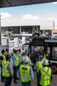 O ônibus a combustão está inserido em um contexto tradicional de risco mecânico e operacional. Já o ônibus elétrico opera com sistemas que podem superar 600 V em corrente contínua (DC), baterias de grande capacidade e estações de carregamento de alta potência (HPC).