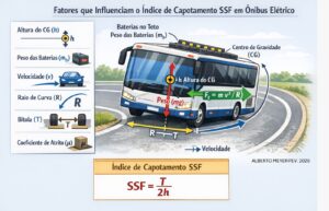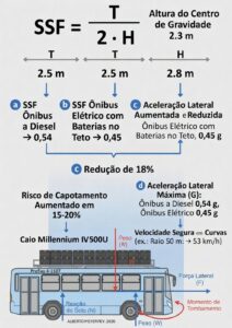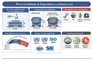 SSF; rollover; centro de gravidade; ônibus elétrico; baterias no teto; estabilidade lateral; NR-10; UNECE R66; UNECE R100; ISO 6469; ISO 26262.