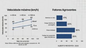 Este artigo apresenta explicação didática do Static Stability Factor (SSF), detalha seu cálculo para ônibus diesel e elétricos, analisa o impacto da pista molhada, discute consequências de lesões em rollover lateral e integra o debate às normas técnicas internacionais aplicáveis, incluindo UNECE R66, UNECE R100, ISO 6469, ISO 26262 e publicações da NHTSA. O objetivo é oferecer base técnica acessível a gestores e operadores para tomada de decisão consciente e gestão adequada de risco operacional.